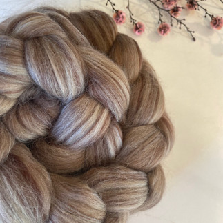 Our first fibres were combed wool tops. There were 2 tops in the box this month, a solid brown tone and a commercially blended brown top. This beautiful blend had a sold brown base with light and dark highlights.